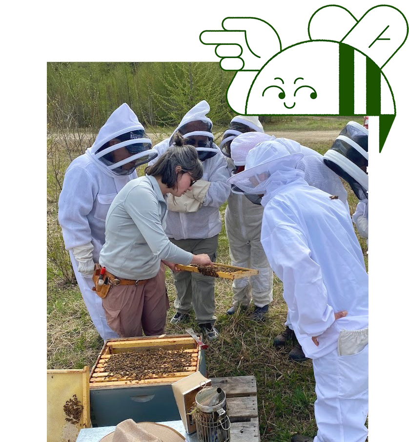 On offre plusieurs formations théoriques et pratiques pour te permettre de devenir autonome et de prendre soin de tes abeilles.