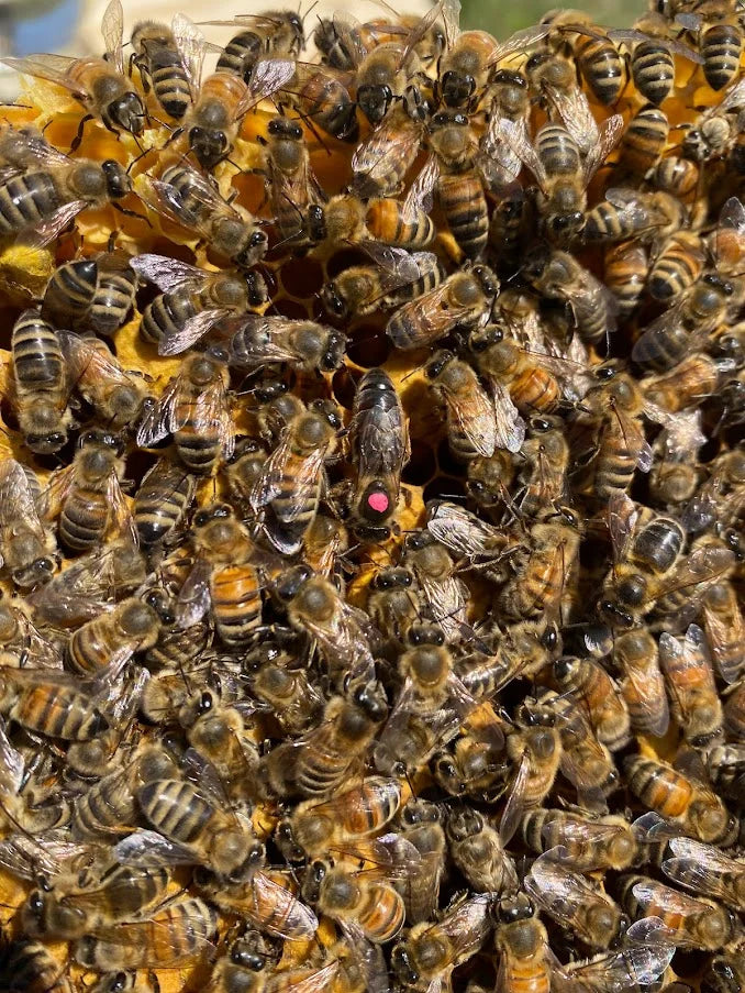 À chaque année, on fait l'élevage de nucléis et de reines sélectionnées pour leur rusticité, leur développement et leur résistance au varroa.
