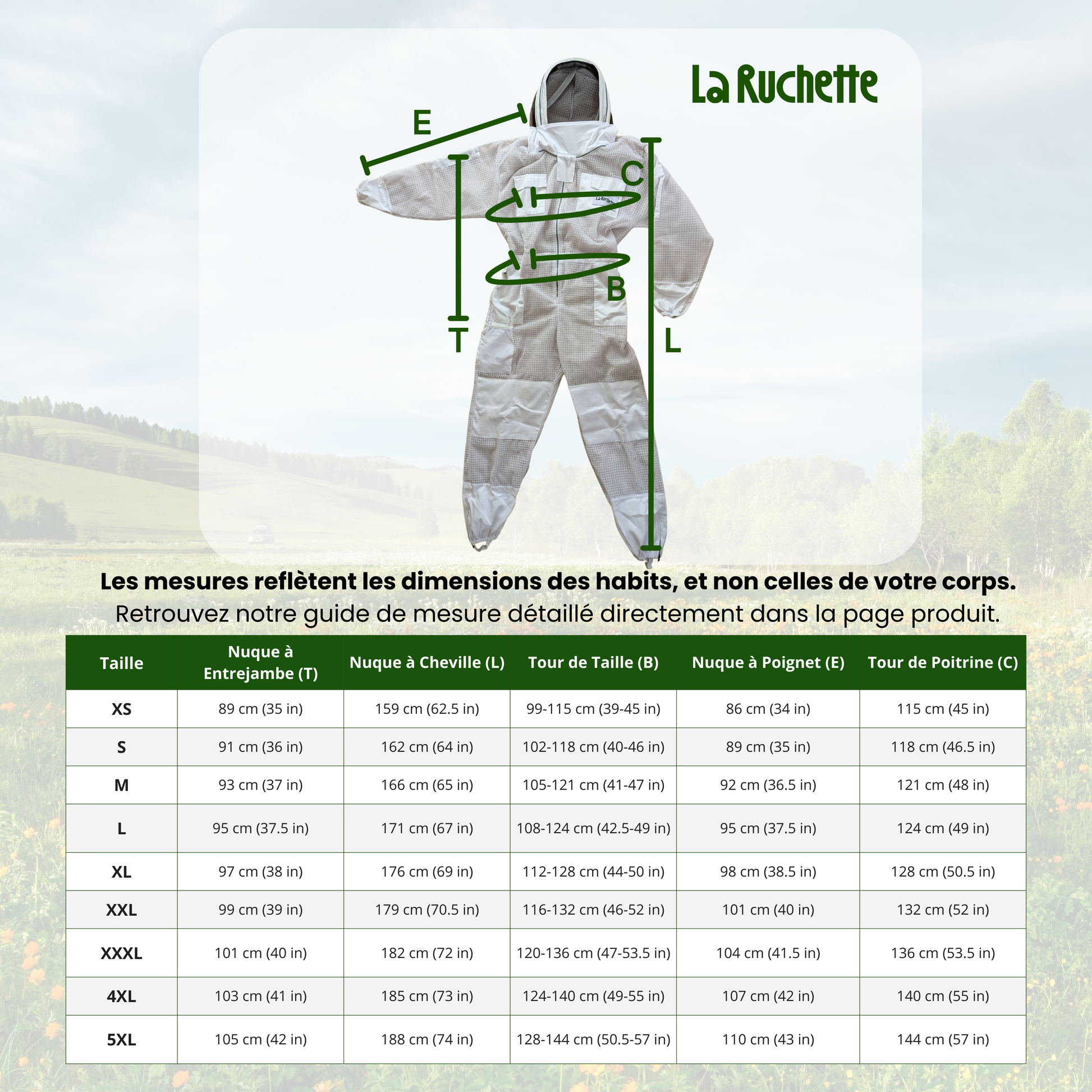 Long cotton beekeeper's suit that protects the entire body. Elasticated wrists and veil included.