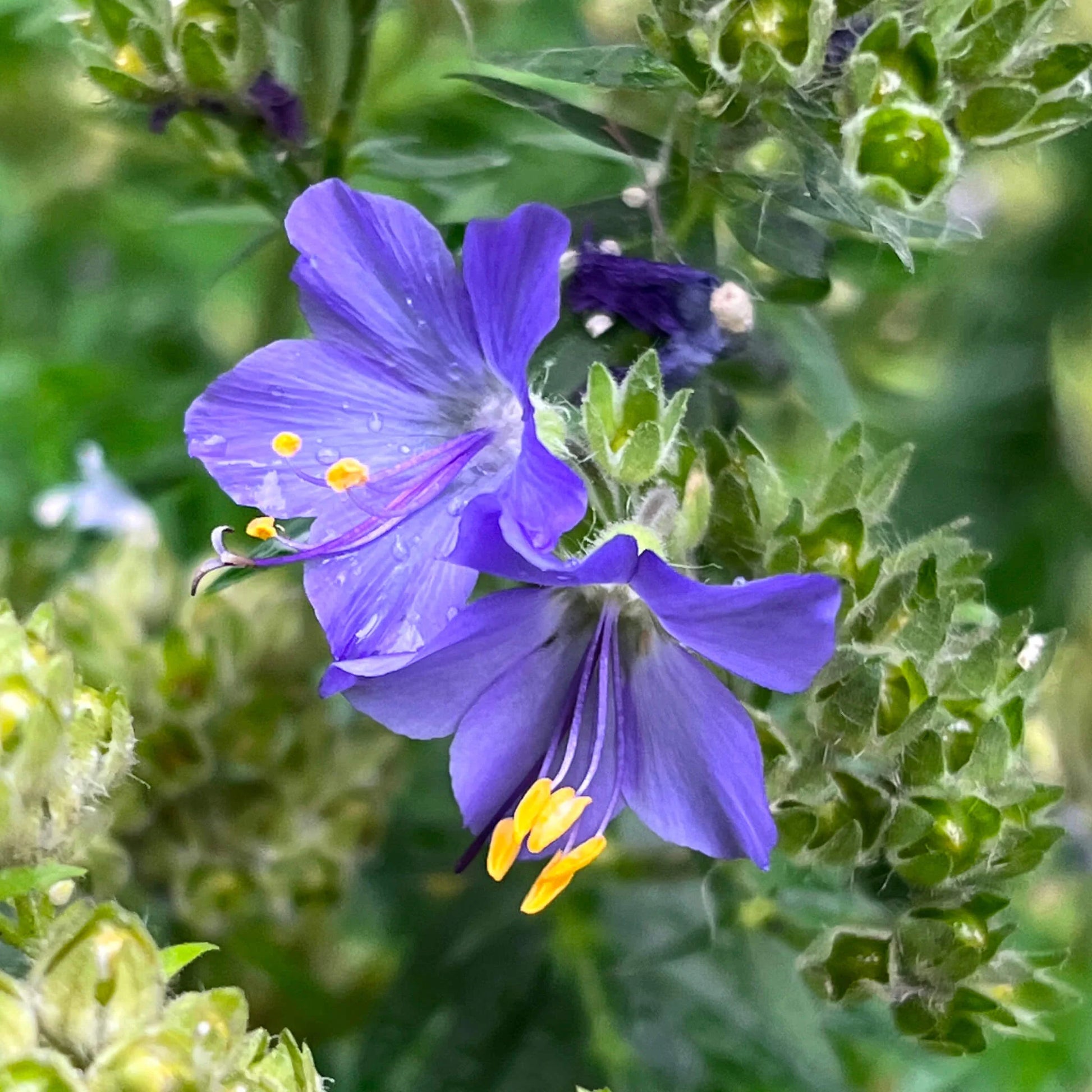 La polémoine rampante (Polemonium reptans), également connue sous le nom de "Jacob's Ladder" (l'échelle de Jacob) en anglais, est une plante vivace délicate avec des tiges fines et grêles portant des feuilles pennées, composées de folioles disposées par paires le long de la tige, créant une apparence rappelant les barreaux d’une échelle. Ses petites fleurs en forme de cloche, de couleur bleu pâle à violet, parfois blanches, sont regroupées en grappes terminales qui ajoutent une touche attrayante et subtile au jardin. Elle fleurit au printemps et au début de l'été, éclairant les prairies humides, les forêts claires, les lisières et les berges des cours d'eau où elle prospère dans des sols riches en matière organique et bien drainés.