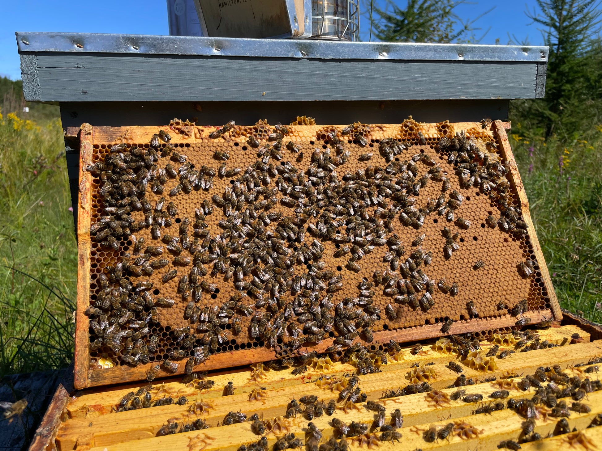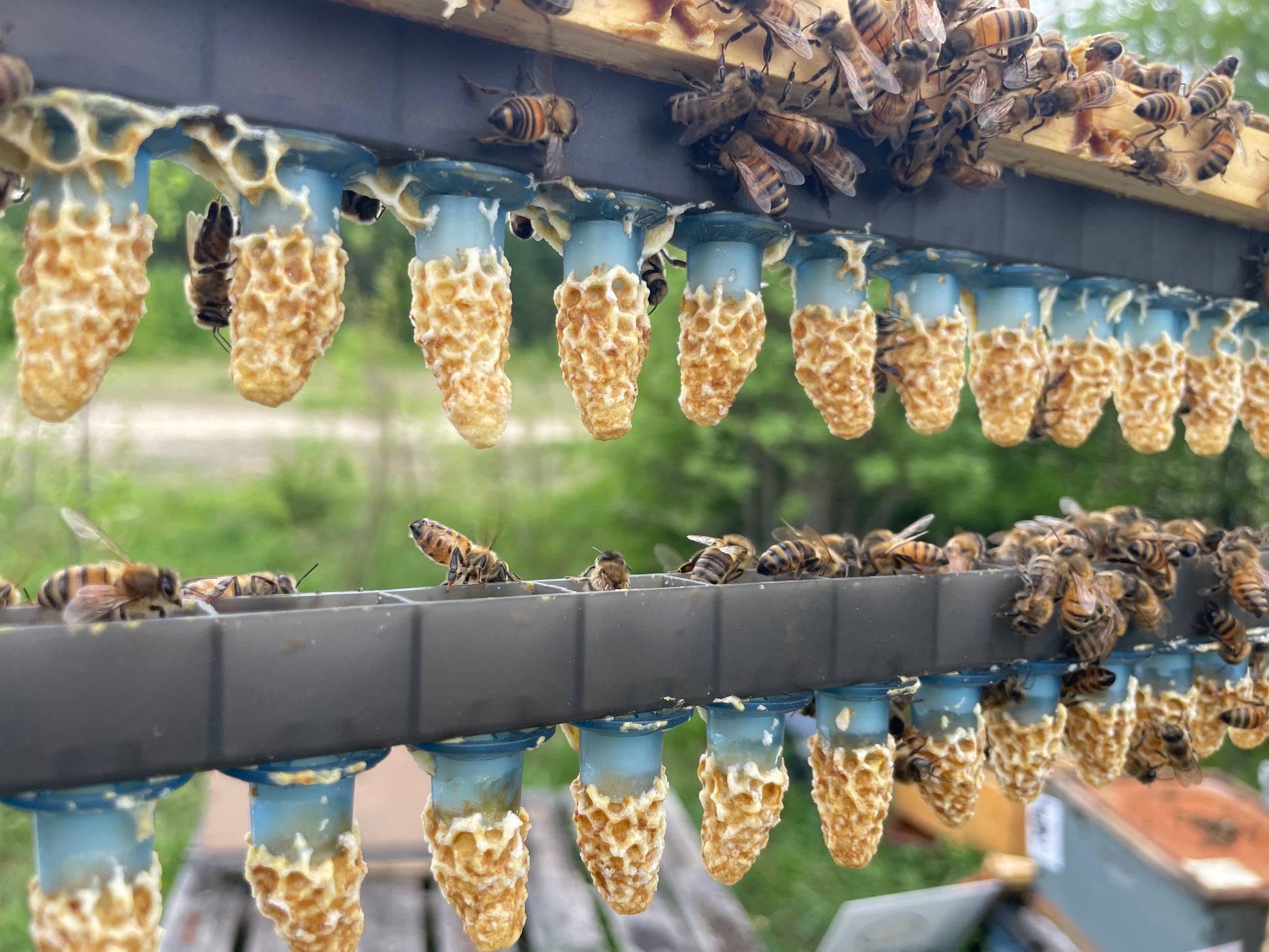 Nos reines sont fécondées à Tewkesbury, loin de l'agriculture conventionnelle et des autres apiculteurs commerciaux. On s'assure ainsi d'avoir des reines fécondées majoritairement par nos mâles dans un environnement sain.