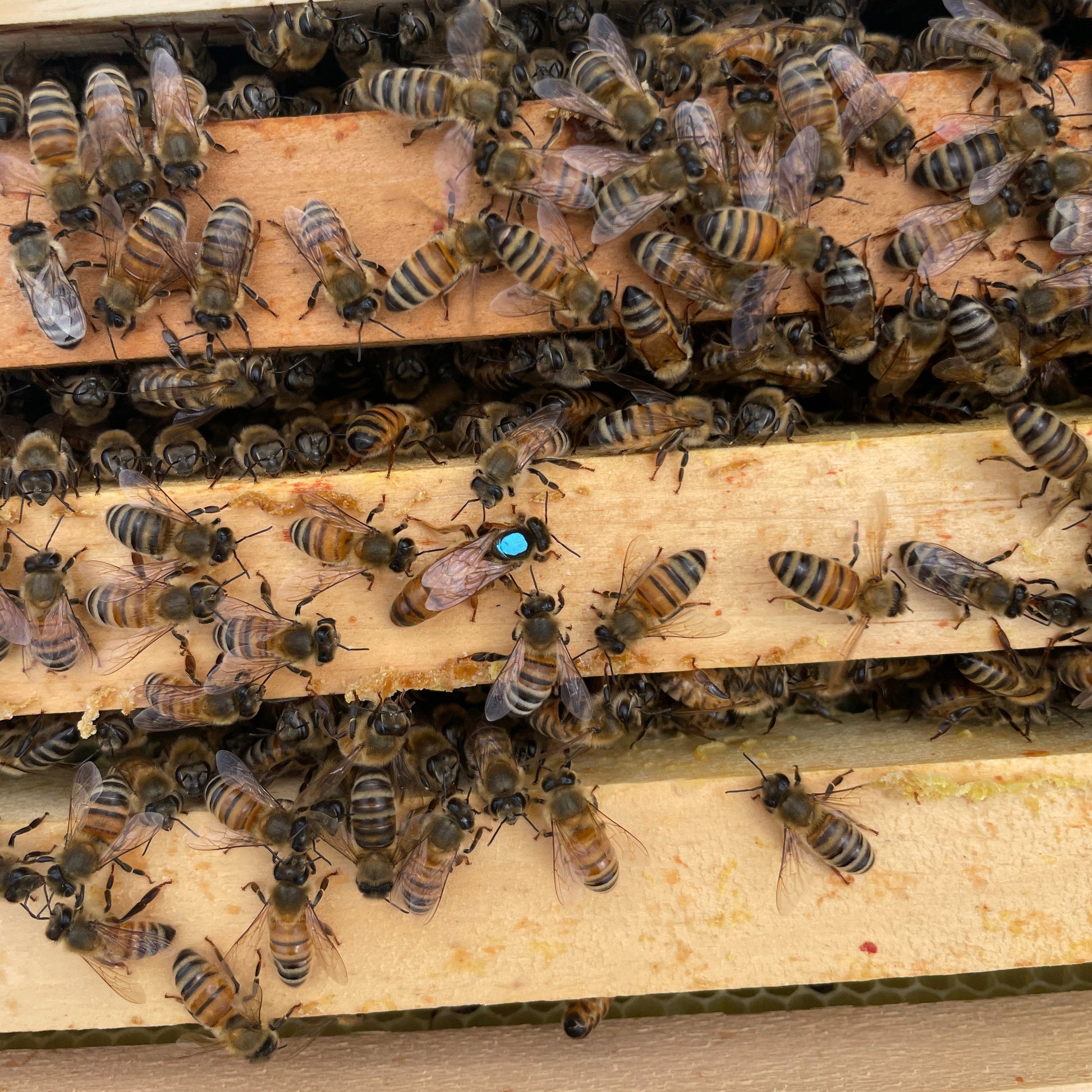 Chaque reine est marquée pour faciliter l'identification et indiquer son année de naissance (2026 = Blanc).